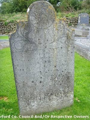 Garranbane Graveyard Co. Waterford. Margaret Gready alias Ryan. In memory of her husband: Maurice Gready. of Ballin???: Who died April 6th 1842 aged 66 yrs