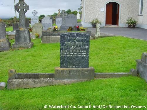 Garranbane Graveyard Co. Waterford. Thomas Norris. Ballyvoile Cove; His wife Ellen (née Lyons). Their sons: David died Aug. 1941 aged 82. Patrick died Dec. 1948 aged 79. William died Nov. 1966 aged 83