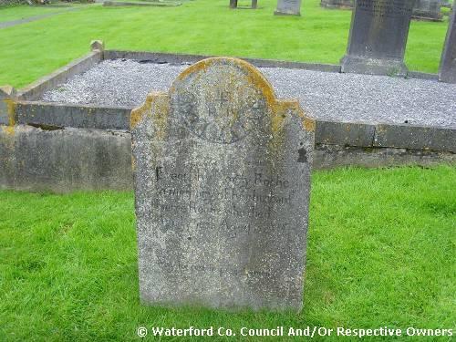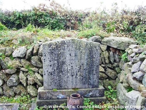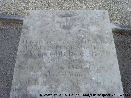 Garranbane Graveyard Co. Waterford. Here are interred the mortal Remains of Mr Martin Redmond of Dungarvan. who departed this life Aug. 19th 1819 Aged 47 Years: also those of live of his Children who died Young; also the body of Mr ???? Redmond who ??????? ?????????????