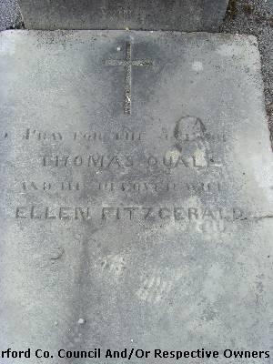 Garranbane Graveyard Co. Waterford. Pray for the souls of Thomas Qualy; And his beloved wife. Ellen Fitzgerald