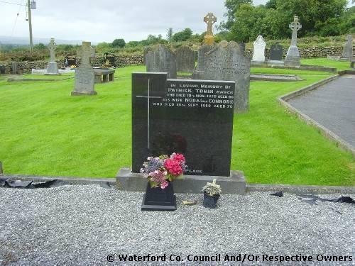 Garranbane Graveyard Co. Waterford. Tombstone of William Tobin Killineen: Died 12th Nov. 1958; His son Patrick died 26th Feb. 1975; His daughter-in-law Mary Tobin (née Cooney): Died 14th June 2006 aged 79 years