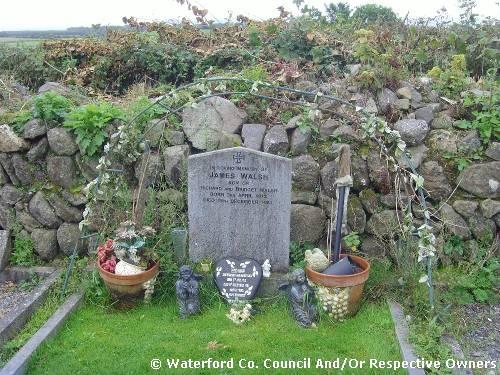 Garranbane Graveyard Co. Waterford. Tombstone of James Walsh. Son of: Richard and Bridget Walsh. Born 3rd April 1913; Died 15th Dec. 1981.
