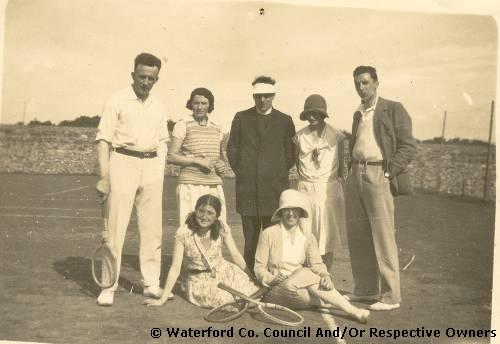Unknown. A group of men and women pictured at a tennis club including Patrick (Pa) Margaret (Peg) and Mary (Moll) Stokes. |