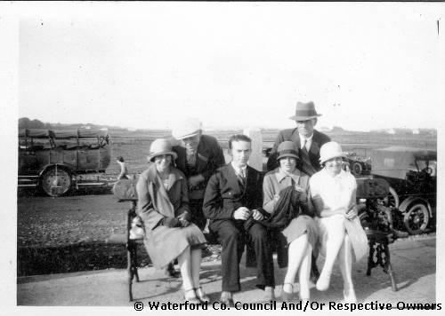 Tramore County Waterford. A group of men and women holidaying in Tramore. Back right William Stokes. Cars visible in background. |