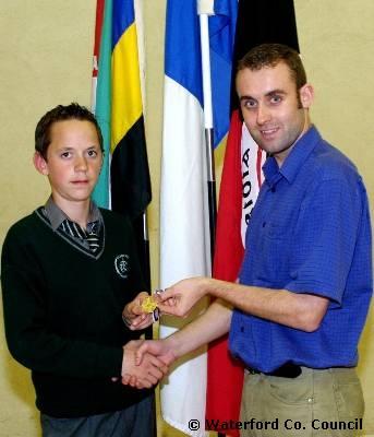 Abbeyside County Waterford. Presentation of medal to student at Friary College in under 13 handball tournament |