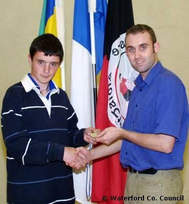 Abbeyside County Waterford. Presentation of medal to student at Friary College in under 17 handball tournament |