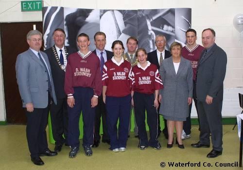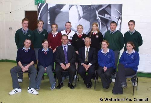 Dungarvan County Waterford. Sean Kelly and John Tracey with group from various schools for Sports Launch |
