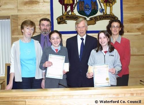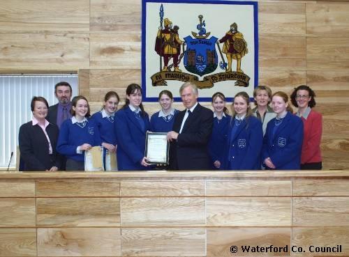 Dungarvan County Waterford. Donal Connolly presenting an award to pupils of Árd Scoil na nDéise |