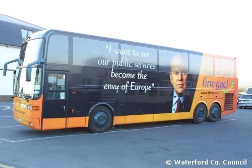 Clonea County Waterford. Fine Gael bus at Clonea Strand Hotel |