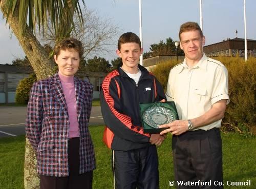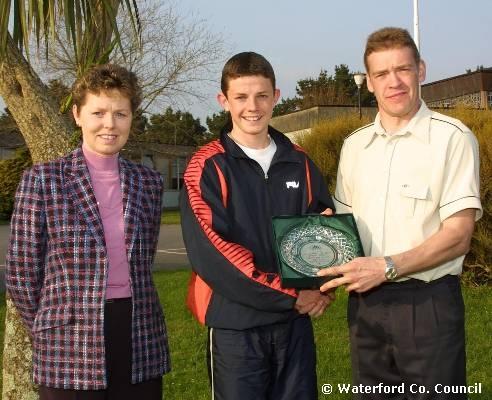 Abbeyside County Waterford. David McCarthy receiving award from Derek Lyons at the Friary College |