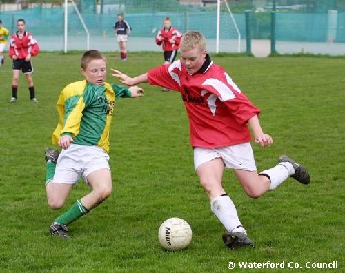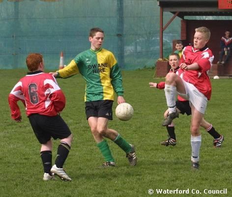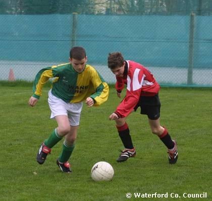 County Waterford. Action shot in a Ballinroad v Bohs U14 soccer match |