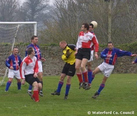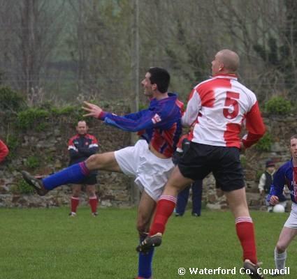 County Waterford. Action shot in a De La Salle v Crusaders soccer match |