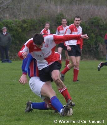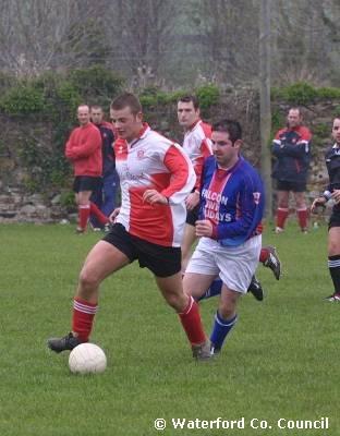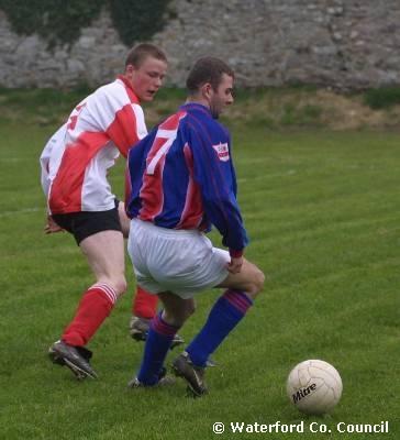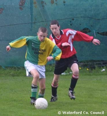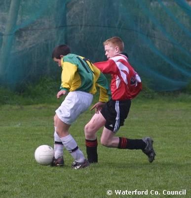 County Waterford. Action shot in a De La Salle v Crusaders soccer match |