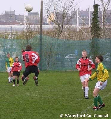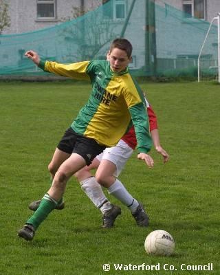 County Waterford. Action shot in a Ballinroad v Bohemians U14 soccer match |