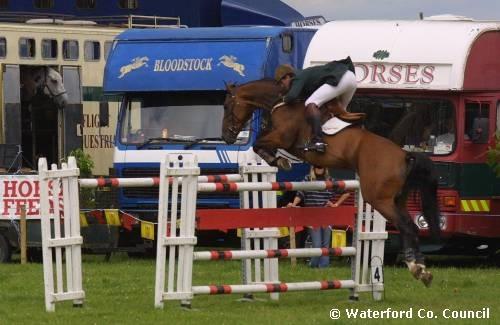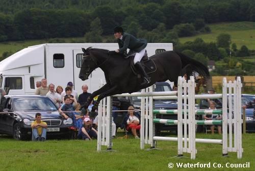 County Waterford. Maire Burke competing at Waterford Tipperary horse jumping show |