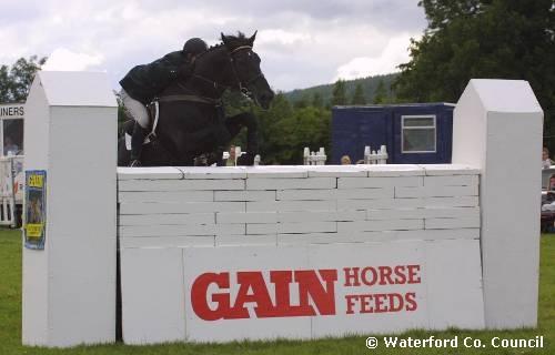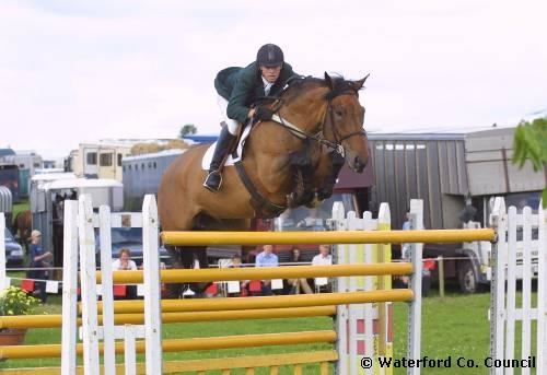 County Waterford. Edward Doyle competing at Waterford Tipperary horse jumping show |